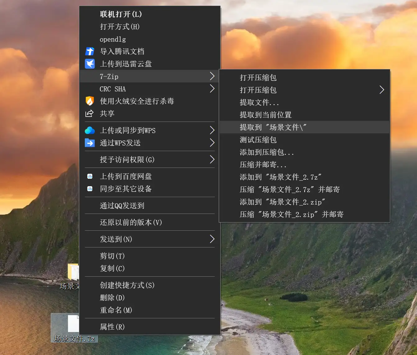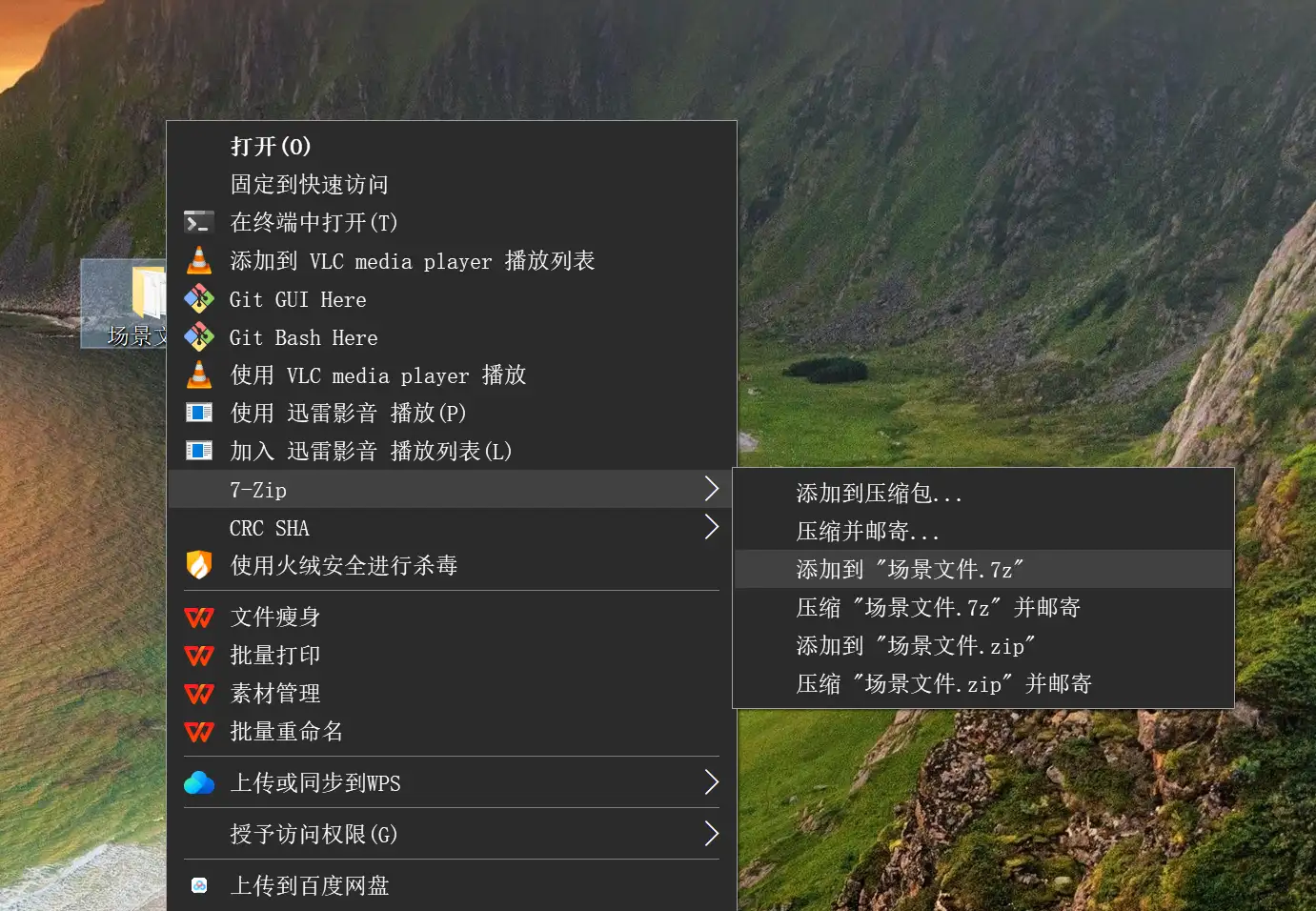 7-zip集成在右键菜单中,压缩解压十分方便。